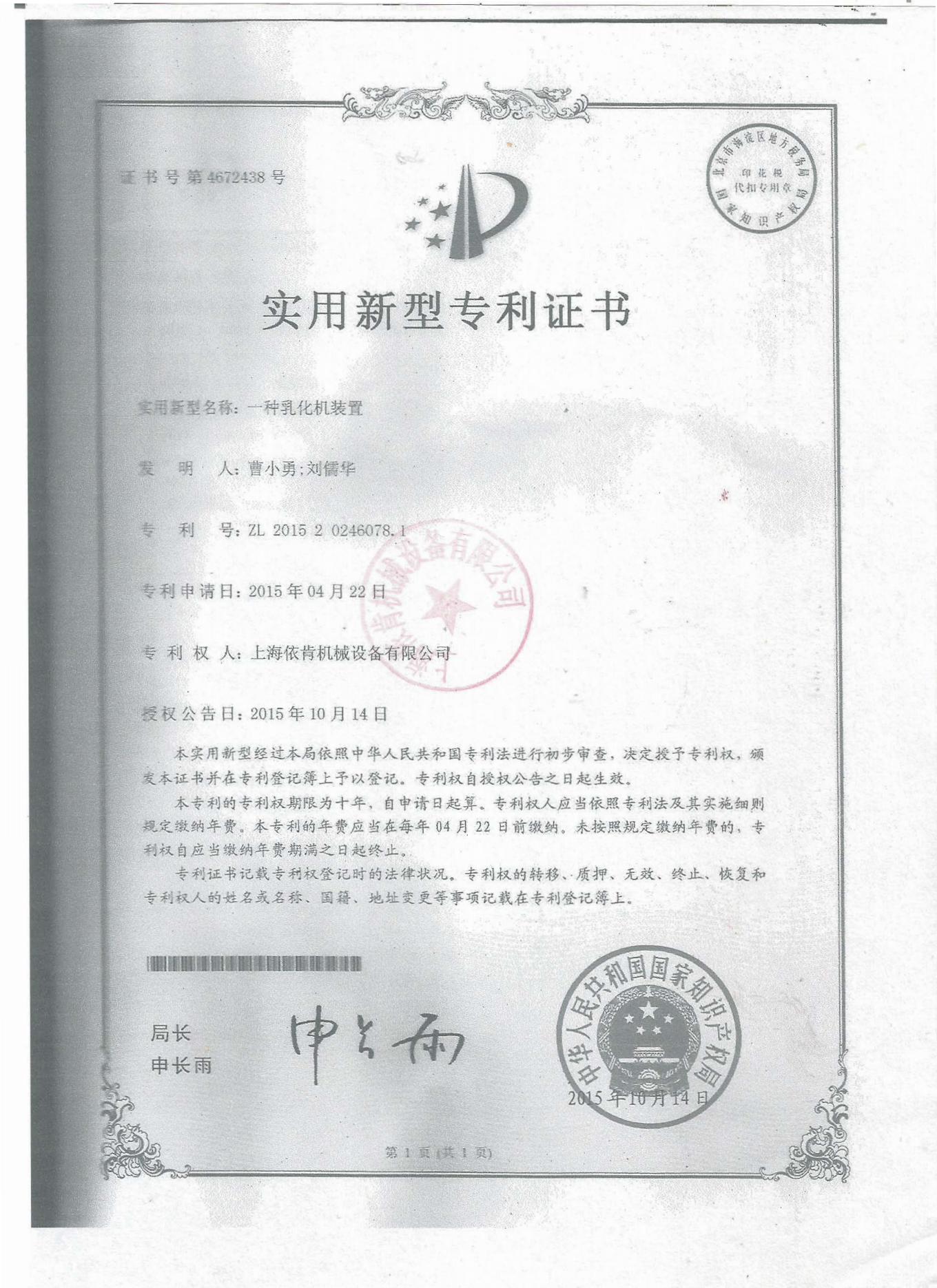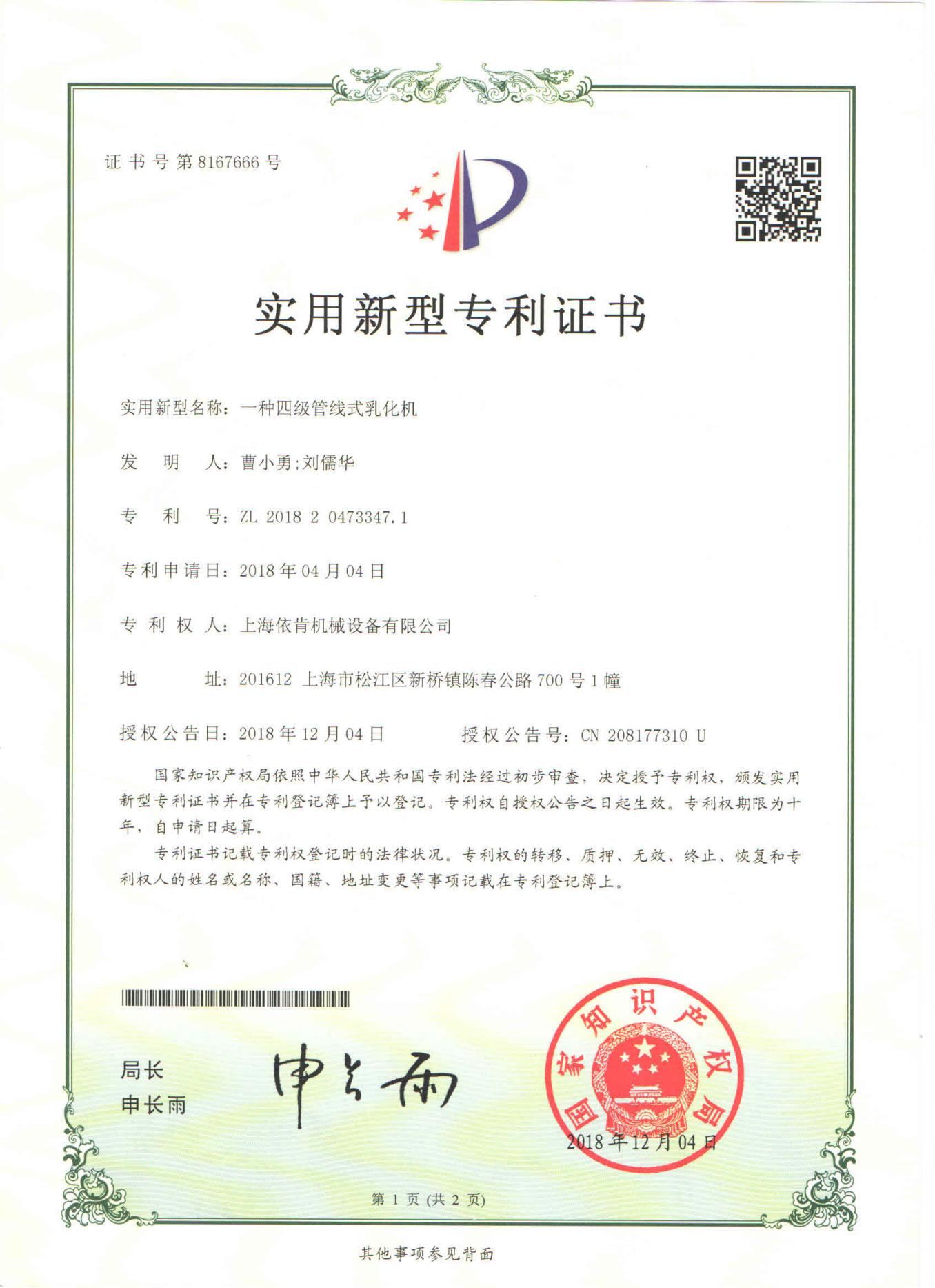 多項專利及證書